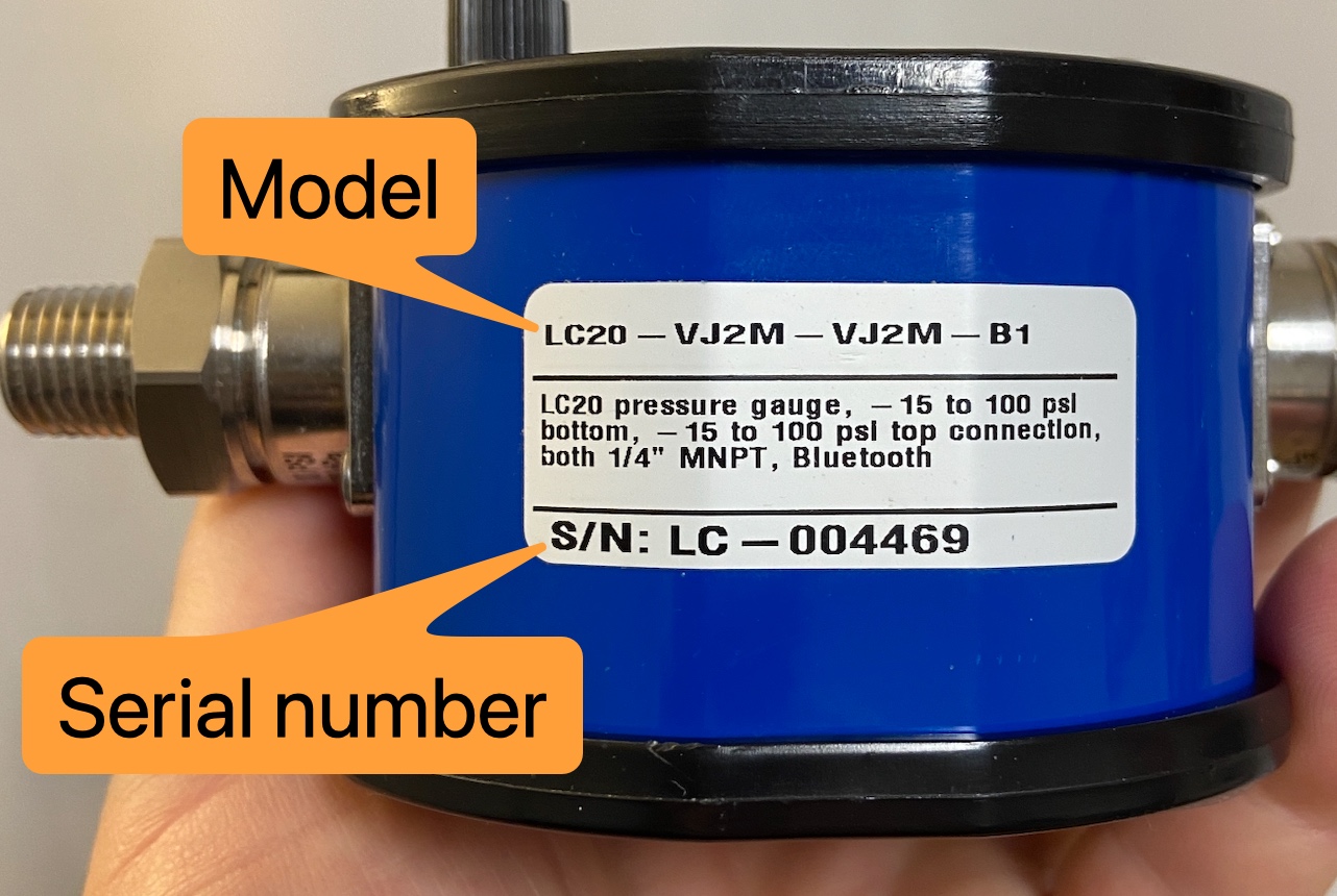 Located on the external casing of your Field Gauge All Field Gauge LC20s are shipped with a custom sticker that contains the following information. Model Number. Model numbers ending in B1 or W1 indicate the gauge has a wireless radio installed. B1 = ...